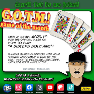 Make Easter happier by playing more games. Learn how to play "4 Sisters Solitaire™" by by signing up for the TMIBoom.com game-of-the-month today....